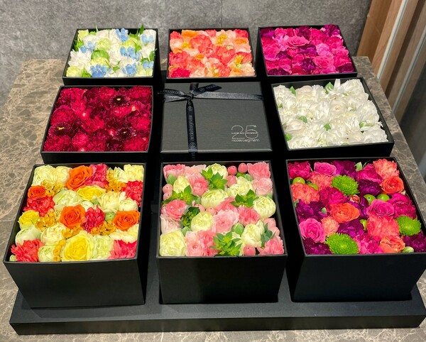 セッティング完了!!今年は、去年よりすこ~しイルミネーションが増えてます(*^。^*)どこが変わったでしょうか!(笑) お近く通った時は・・・あ!もろみイルミネーションしてた~っと見に来てくださいね~お花屋さんでかわいいお花BOXと素敵なXmasディスプレイをみつけたので、おすそ分け~★です。 ちょっと早めに・・・Merry Xmas★