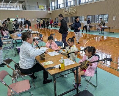 弊社は、ユンボー体験、水鉄砲体験、三線体験の参加をしました。三線体験は師範である社長が先生!贅沢な体験ですね~みんな上手に弾けたかな(*´▽`*)